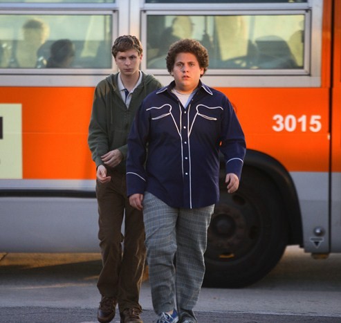 Set in an anytime-any-town world, Superbad holds the warping mirror of funhouse ribaldry to the pressure of male teenage angst. The large part of this angst flows from a young man’s longing for belonging, and a burgeoning desire for warmth and intimacy. Combine the unlikely fulfillment of those intensifying desires with an increase in testosterone as their male organs fill with an escalating sense of importance and you have the underpinning of teenage angst.